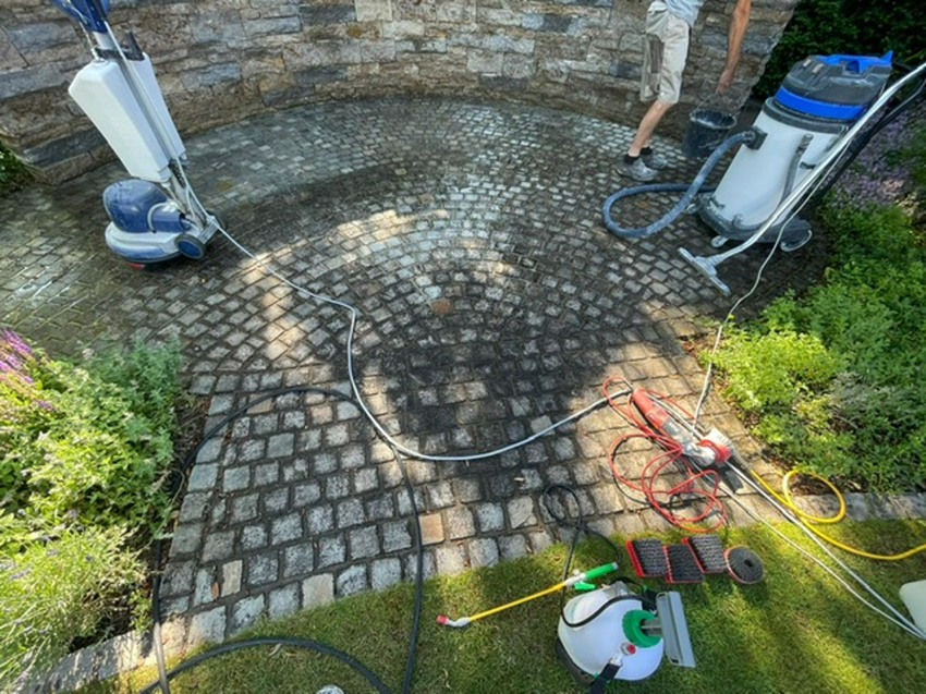 Mit unseren Vorher-, Nachher-Bildern möchten wir Ihnen veranschaulichen, was unsere Arbeit ausmacht und warum es sich für Sie lohnt, uns zu engagieren: Sei es für Ihre Terrasse, Ihren Flur mit Marmorfliesen oder gar für Ihren wertvollen, alten Terrazzoboden! Wir bringen Ihre Böden wieder zum strahlen! Und das mit größter Sorgfalt.